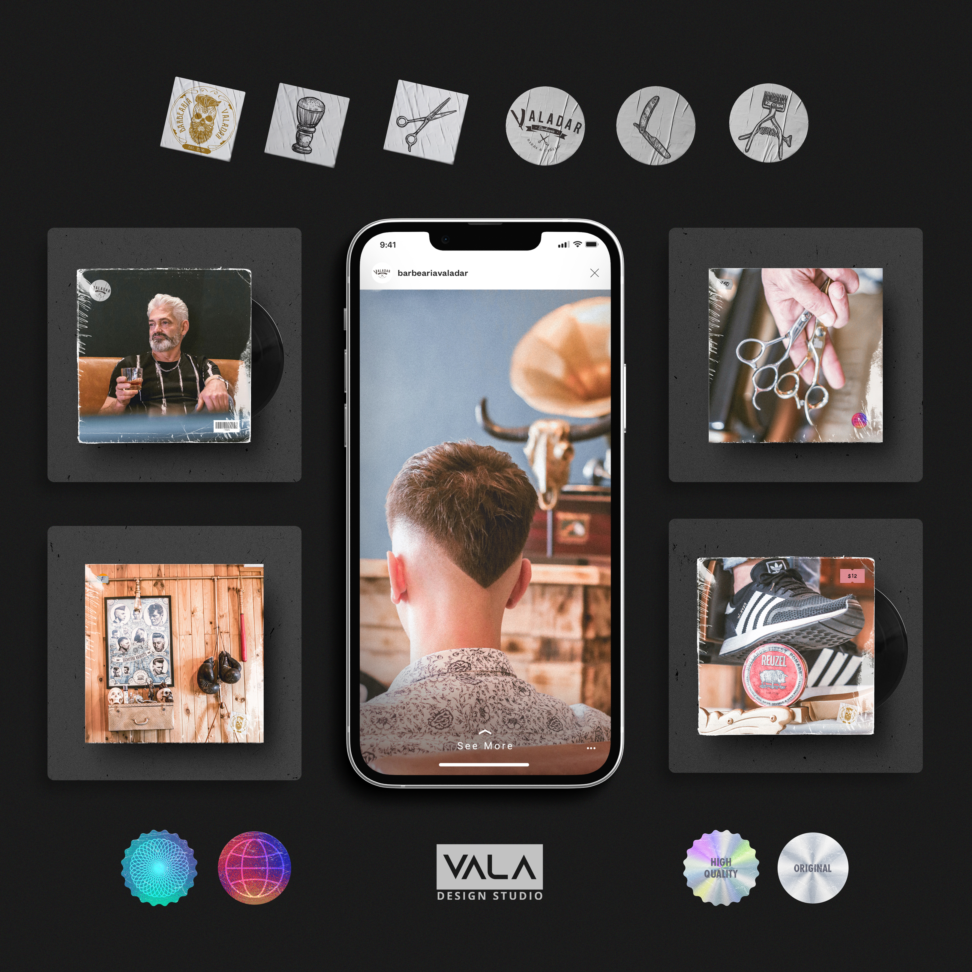 Produção gráfica e fotográfica para as redes sociais da Barbearia Valadar