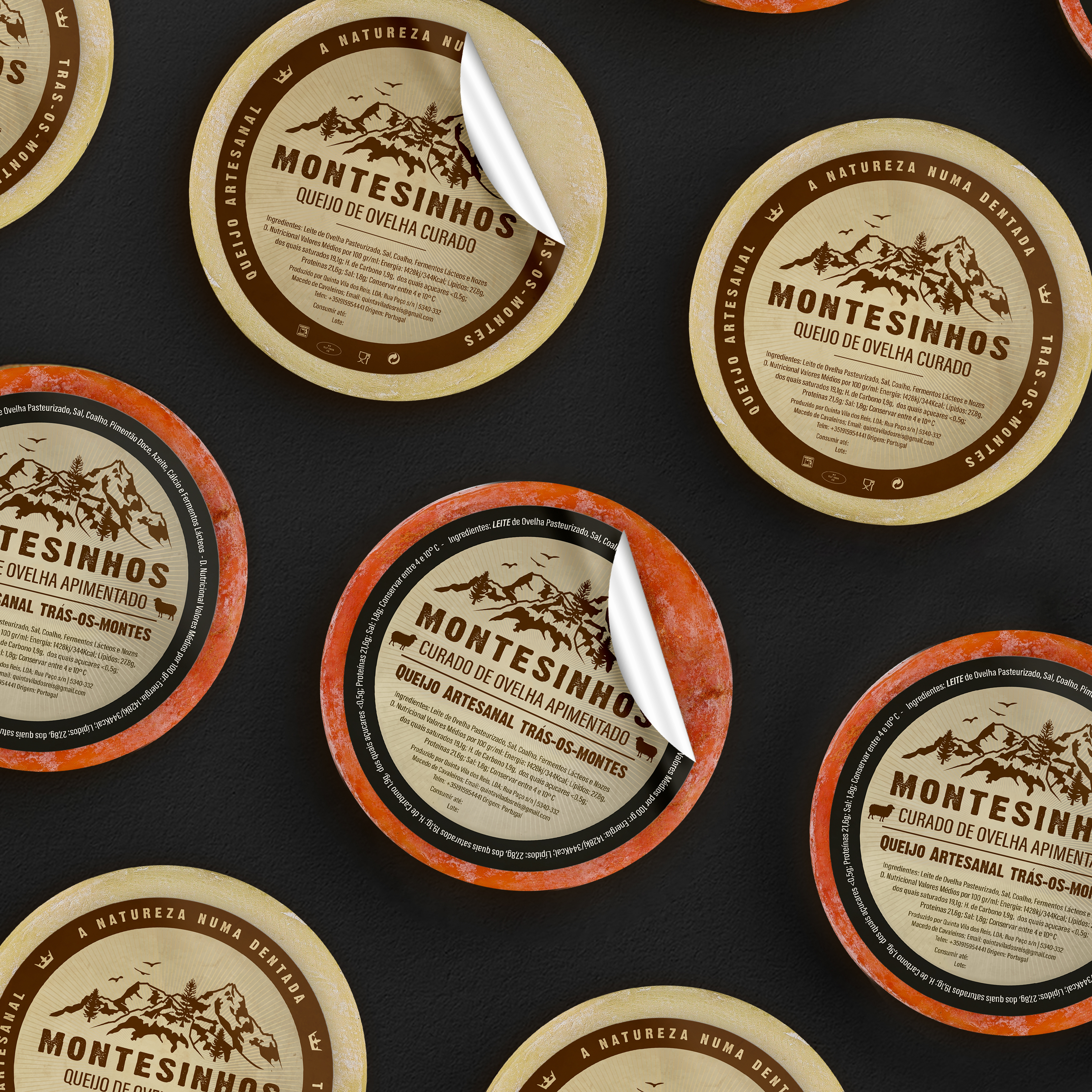 Criação de logotipo e branding para o Queijo Montesinhos, desenvolvendo uma identidade visual que destaca a tradição e a qualidade deste queijo Transmontano.