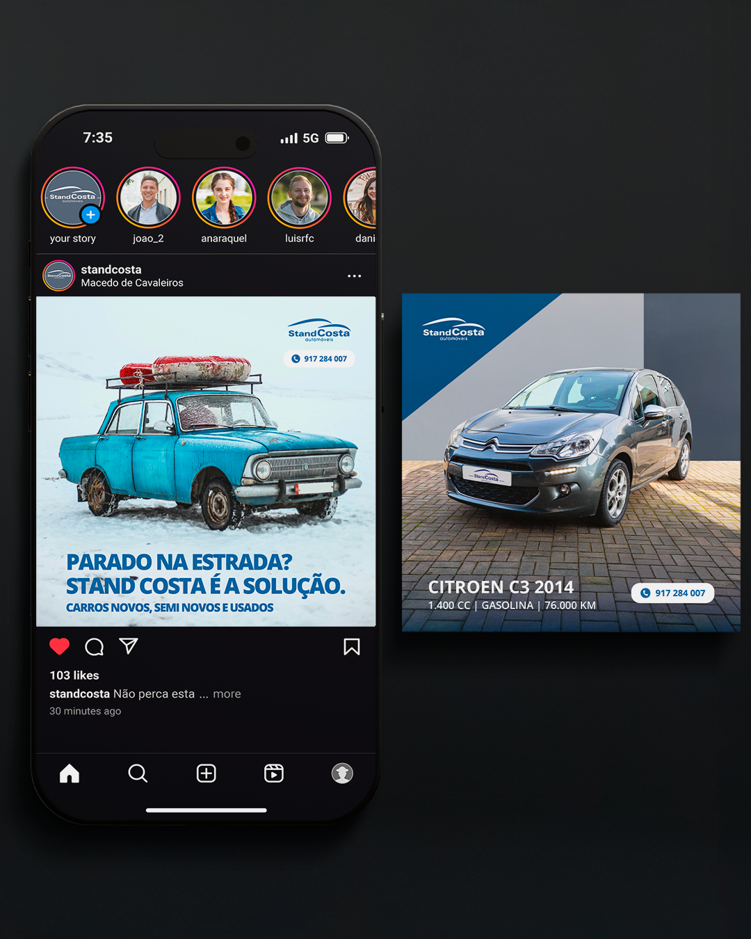 Realização de website para o Stand Costa, criando uma plataforma online que apresenta os veículos e serviços de forma intuitiva e atrativa.